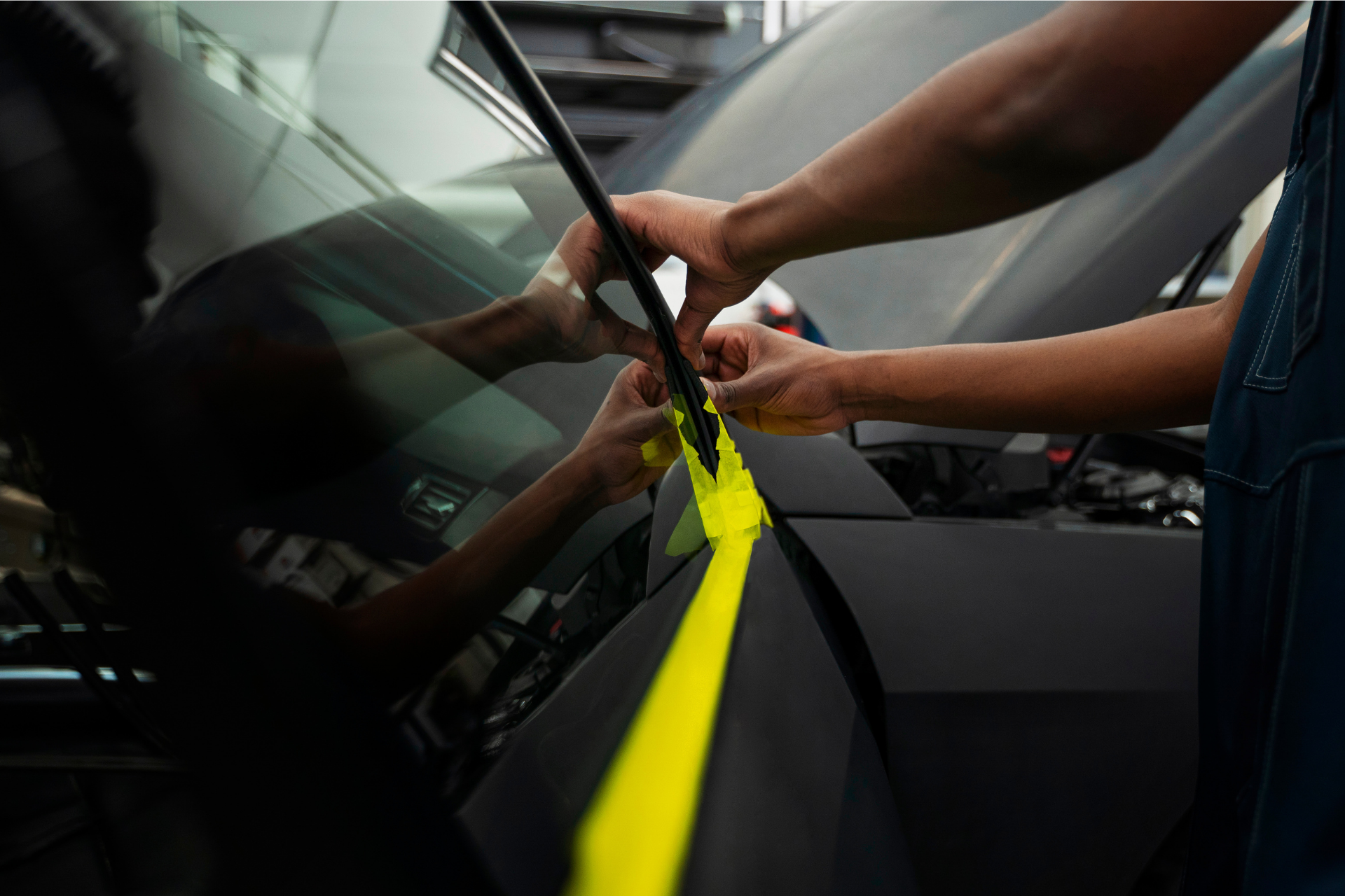 The tint film is carefully applied for a smooth, bubble-free, and seamless finish.